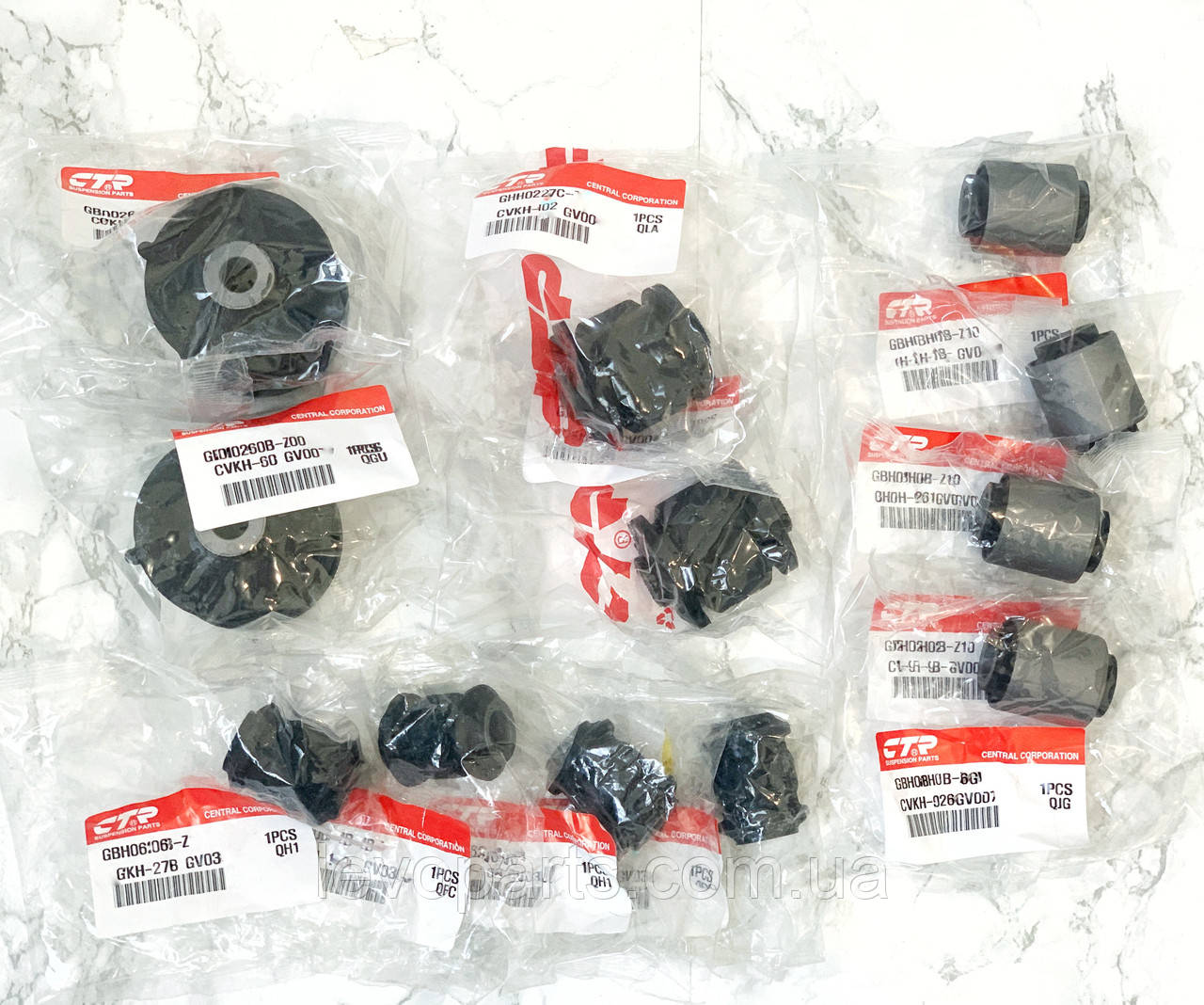 Повний комплект сайлентблоків задніх важілів корейського виробника CTR, краще співвідношення ціни та якості. За відгуками наших покупців, середній ресурс цього комплекту 90-130 тис в залежності від стилю їзди і якості доріг в регіоні.